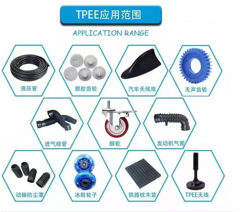TPEE(熱塑性聚酯彈性體)是含有聚酯硬段和聚醚軟段的嵌段共聚物。其中聚醚軟段和未結(jié)晶的聚酯形成無定形相聚酯硬段部分結(jié)晶形成結(jié)晶微區(qū),起物理交聯(lián)點(diǎn)的作用。